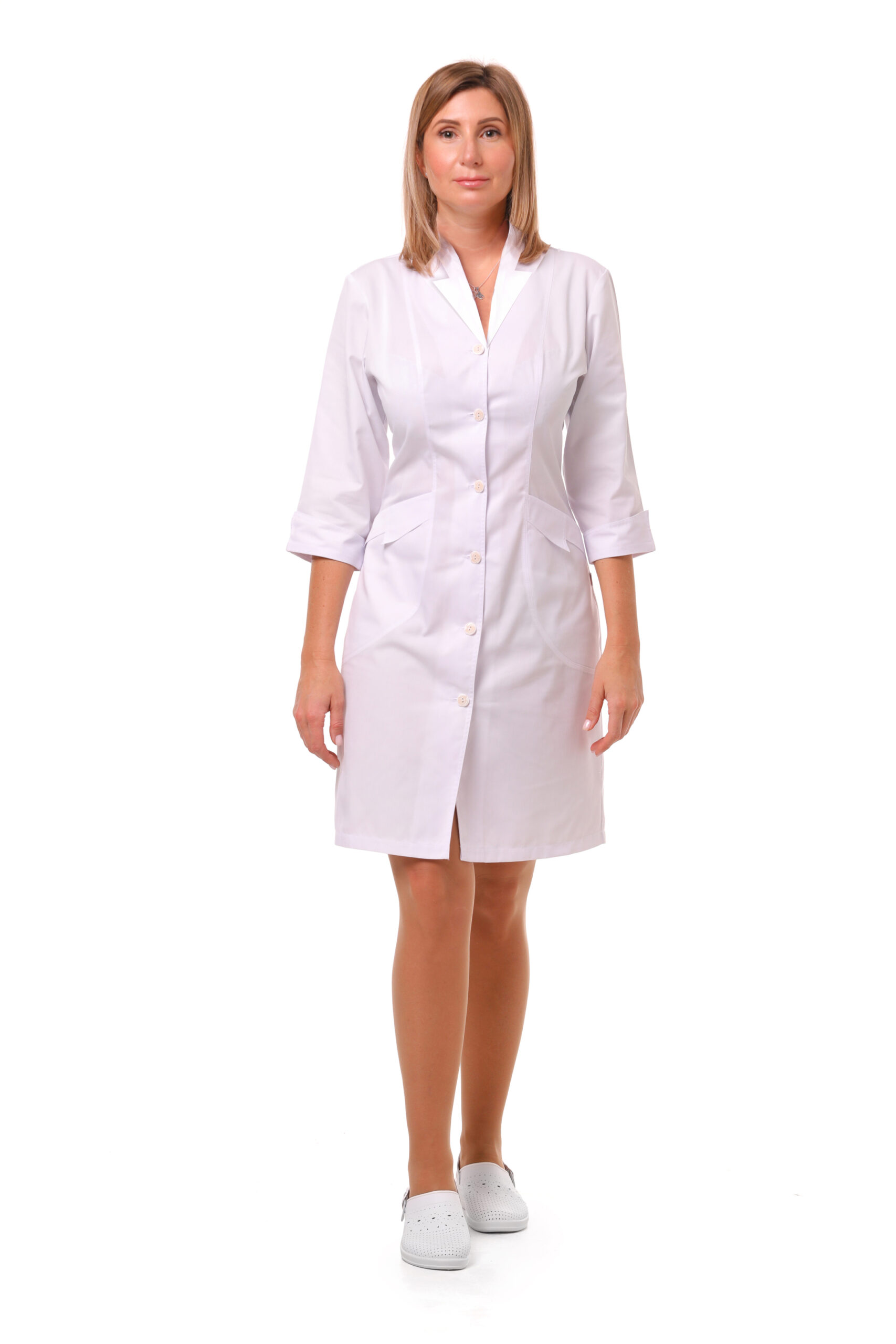 Arizona Baumwollkittel, weißer Knopf, 01, 3/4