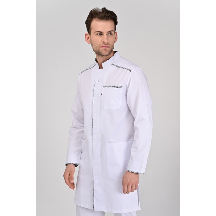 Baumwollkittel Oslo, weiß-grau kariert, Größe 01-10, DR