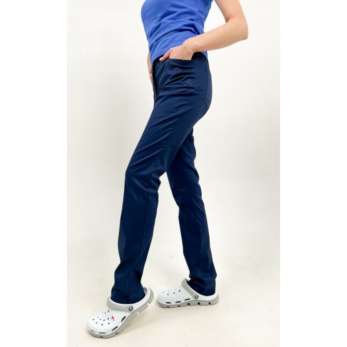 Dallas Medical Hose mit Reißverschluss. – Hose mit Knopf. Mit Reißverschluss, 2 Vorder- und 2 Gesäßtaschen. Der Bund ist hinten elastisch.
