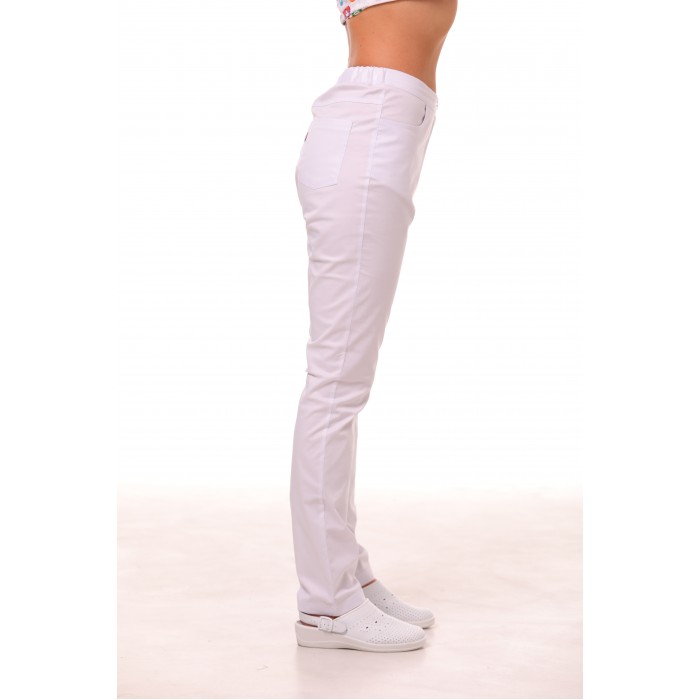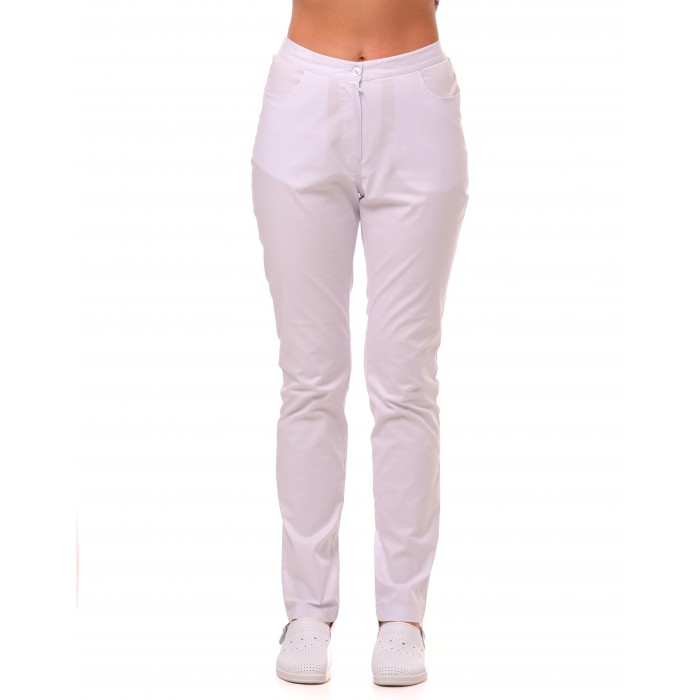 Dallas Medical Hose mit Reißverschluss. – Hose mit Knopf. Mit Reißverschluss, 2 Vorder- und 2 Gesäßtaschen. Der Bund ist hinten elastisch.