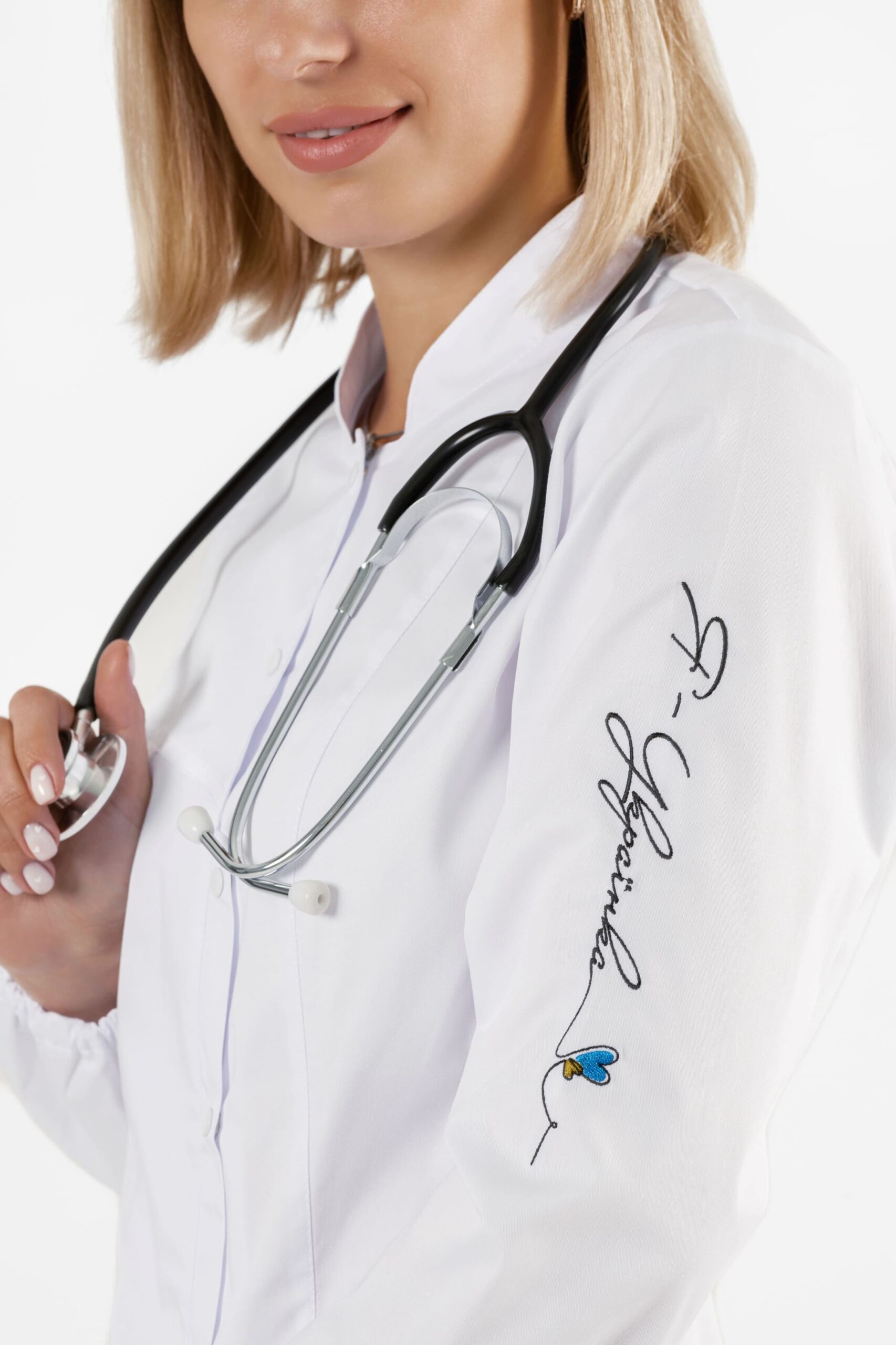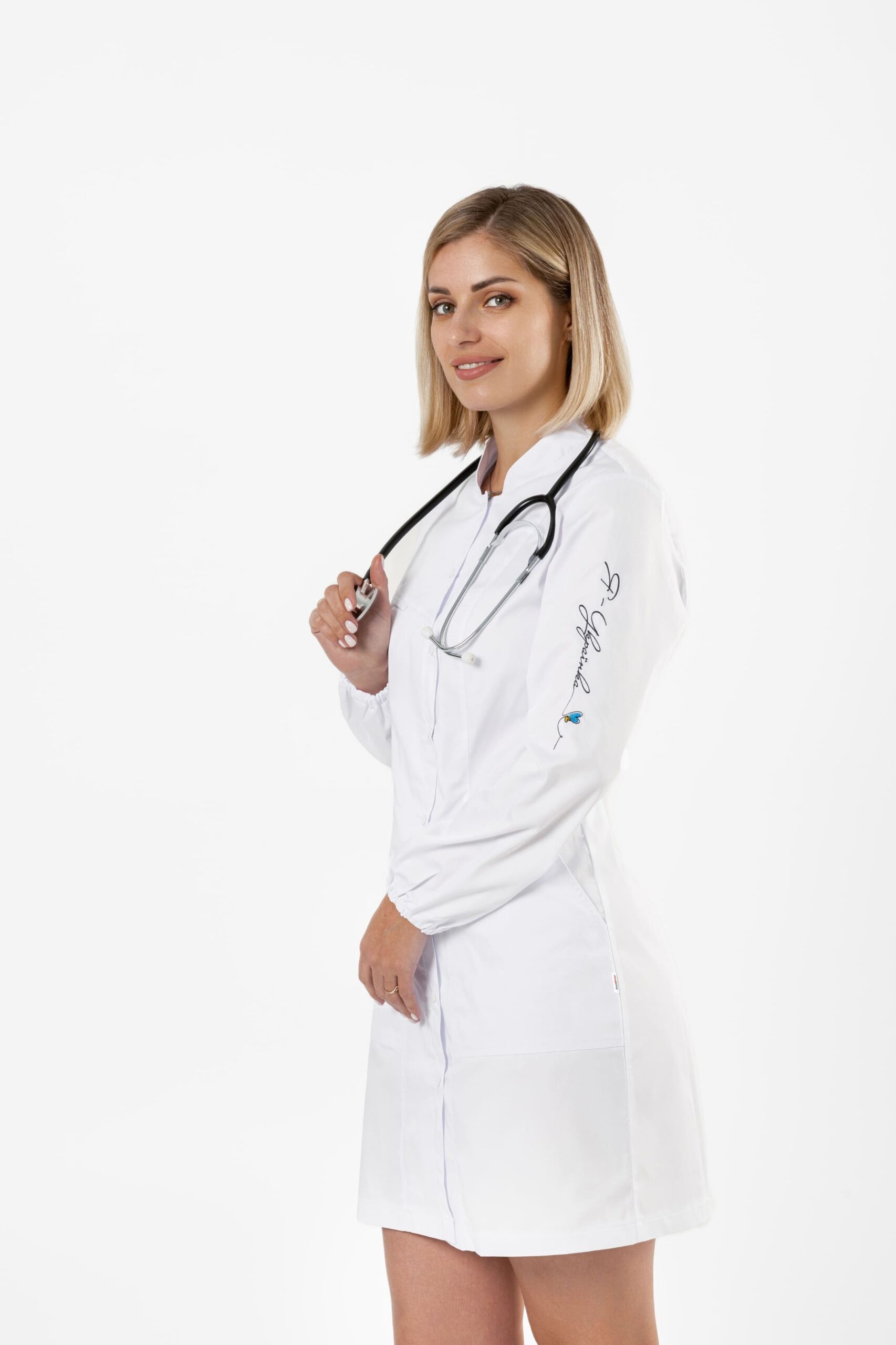 - Damenkittel mit leicht taillierter Silhouette, knielang