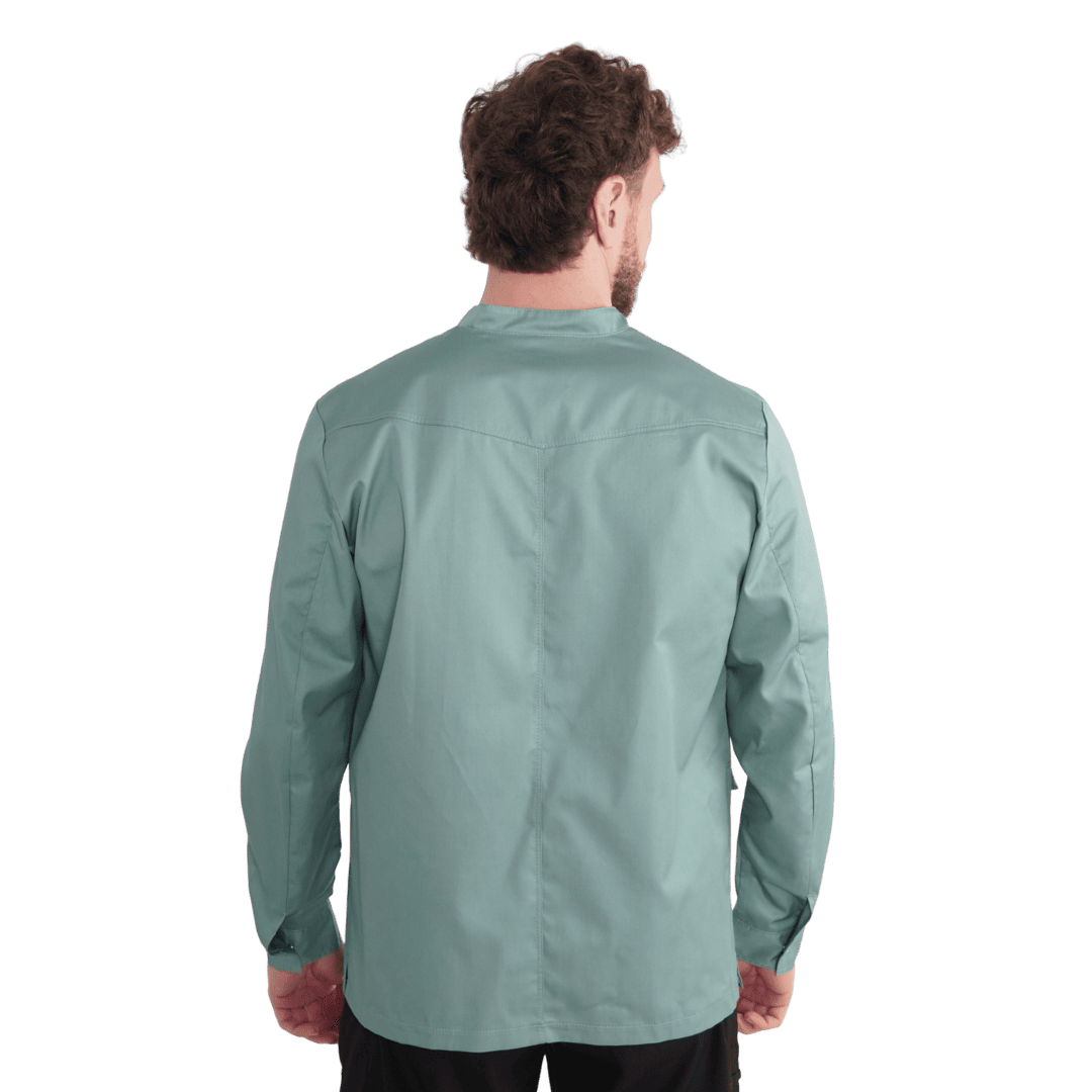 Die Ärmel sind doppelt genäht, handgelenklang und haben geknöpfte Manschetten am unteren Ende.
