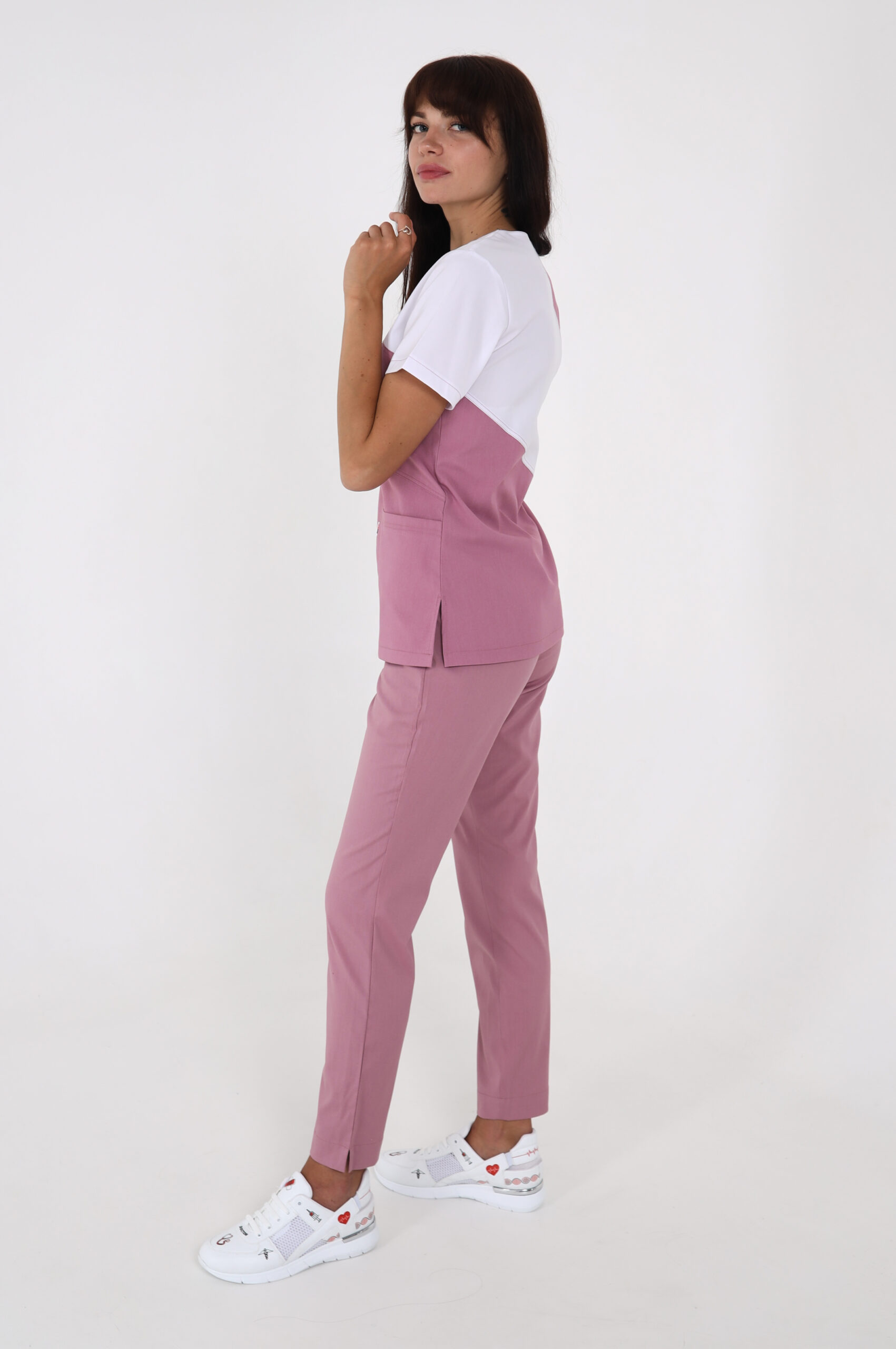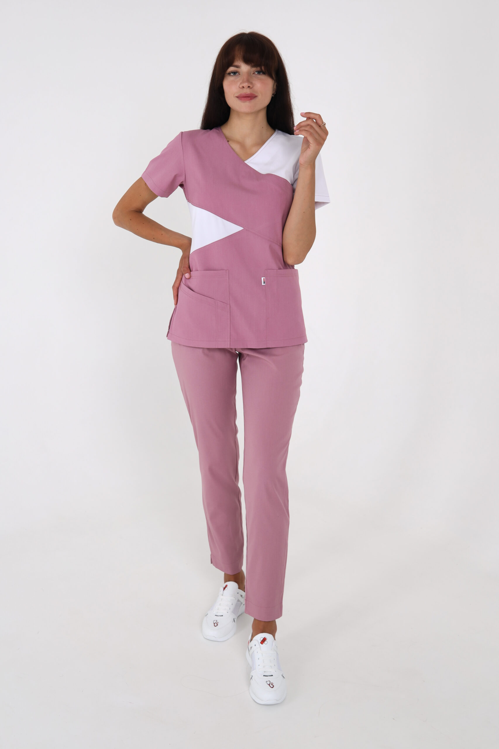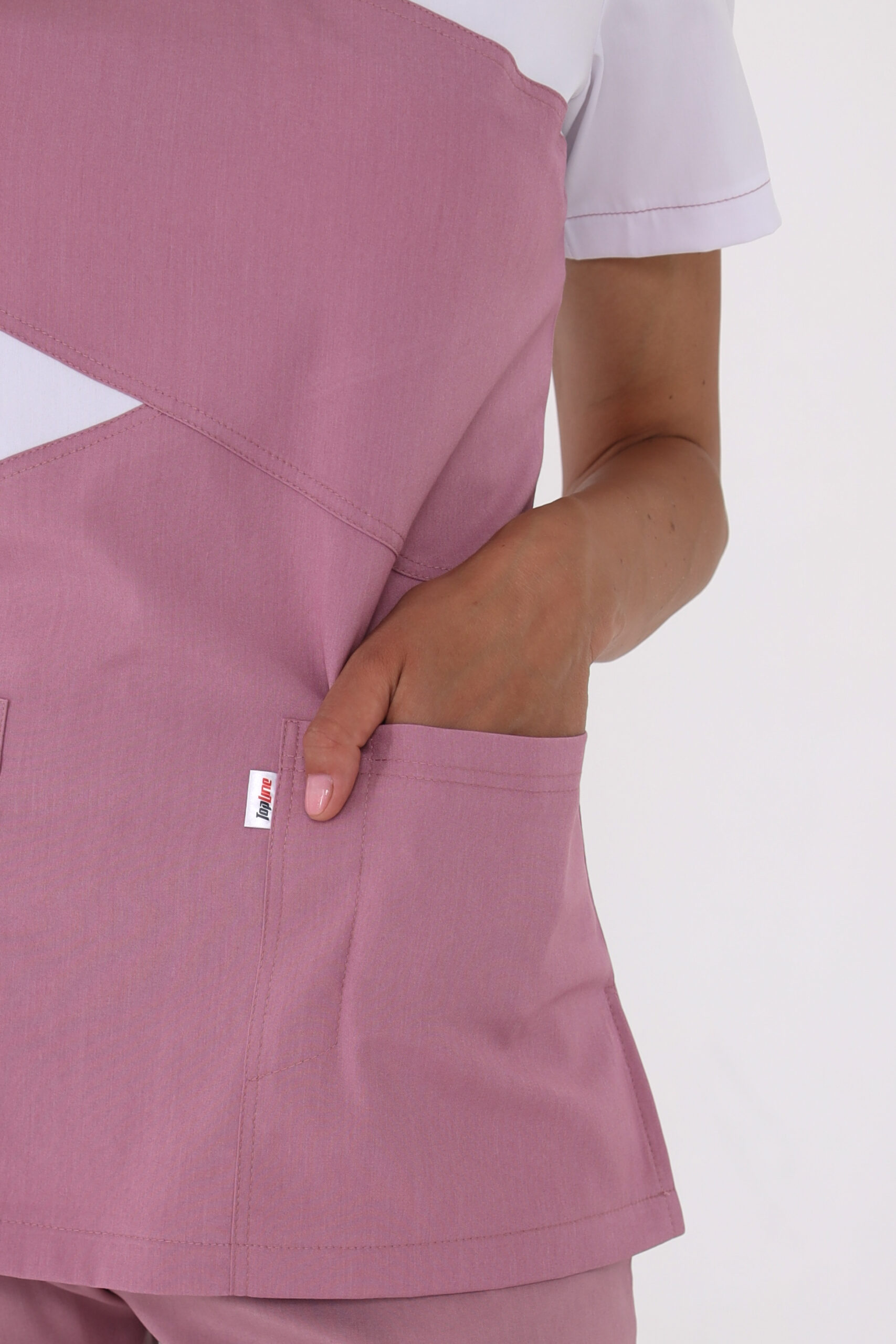 • Kurze Ärmel. V-Ausschnitt am Brustkorb