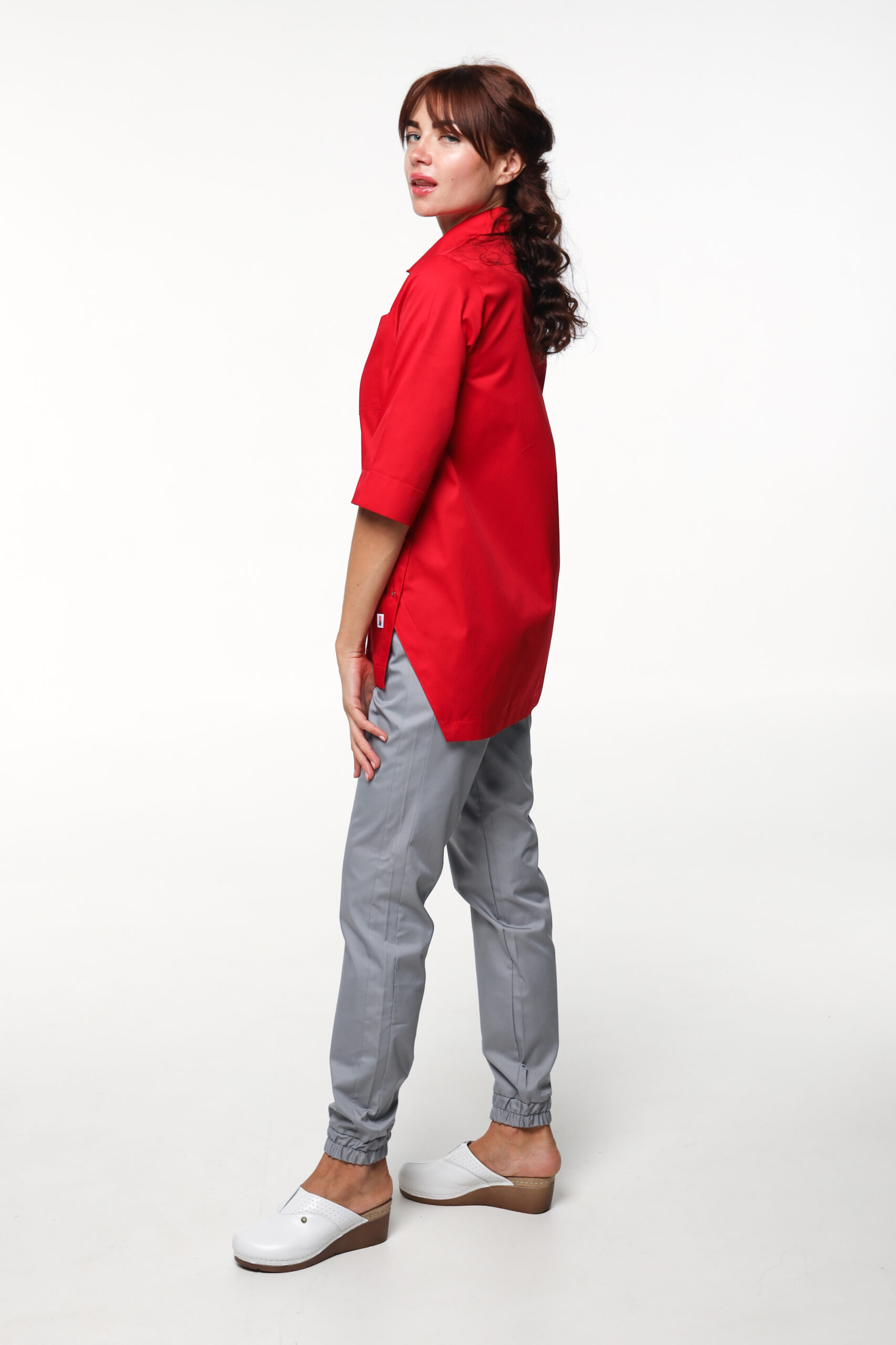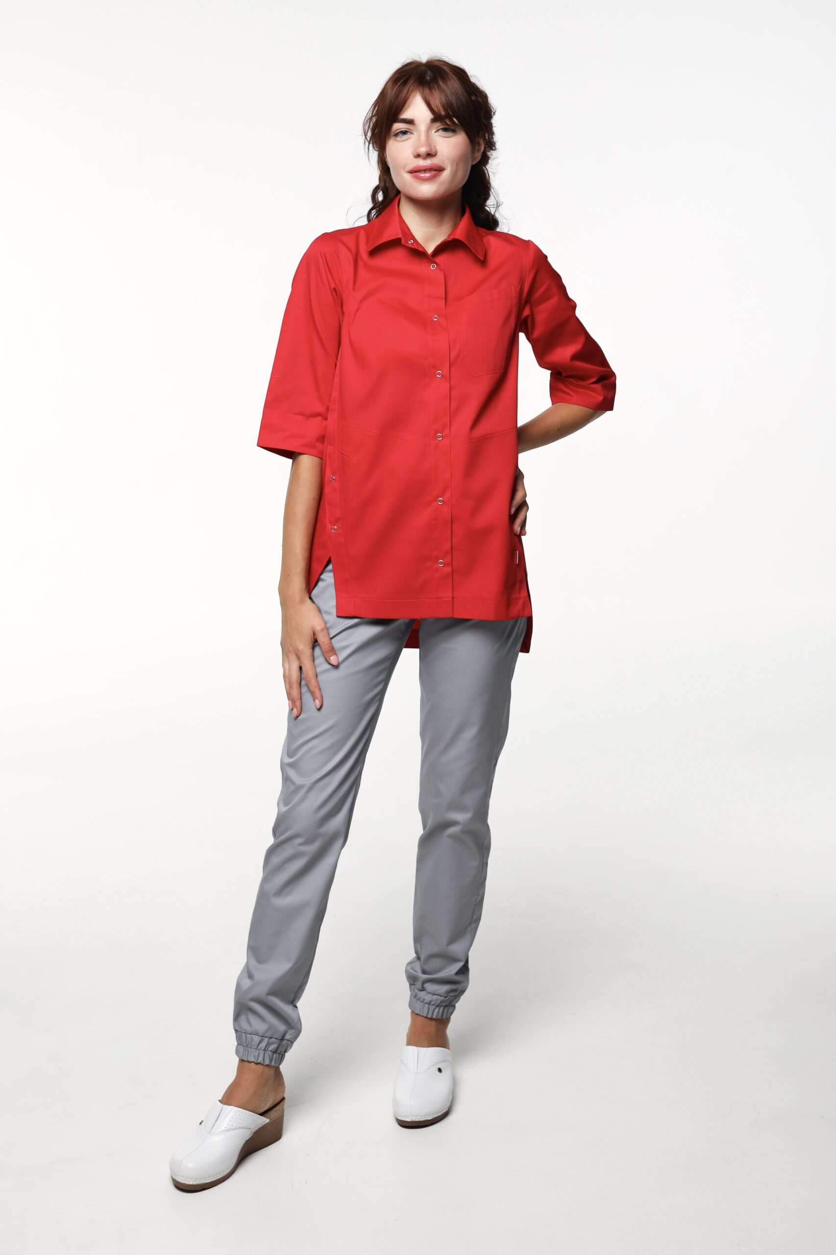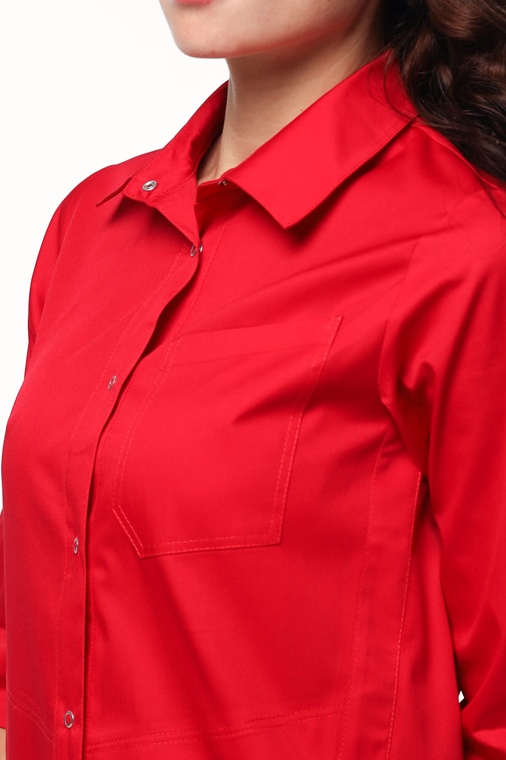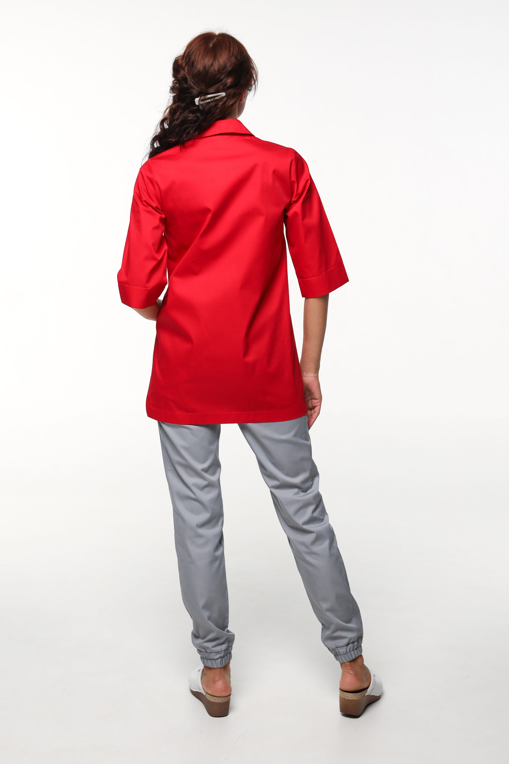 Es verfügt über seitliche Innentaschen an den Seiten und eine asymmetrische Brusttasche auf der linken Seite.